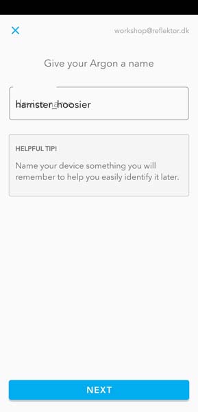 - The app will now use Bluetooth to pair with your device. If this is the first time your Argon is connected, it is probably due for a device OS update. This is handled automatically by the App. this may take some time, depending on the number of updates pending.