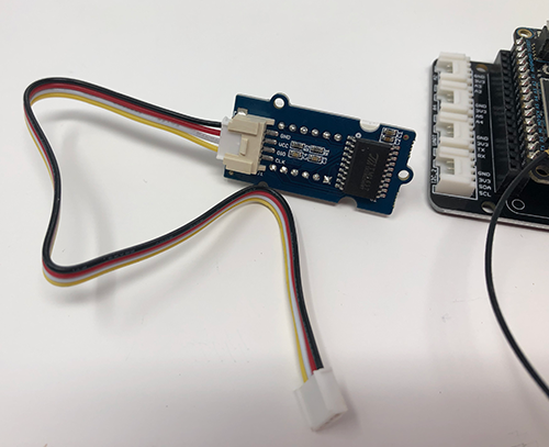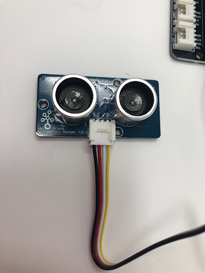- Connect one end of the Grove connector to the bottom of the Ultrasonic Ranger.