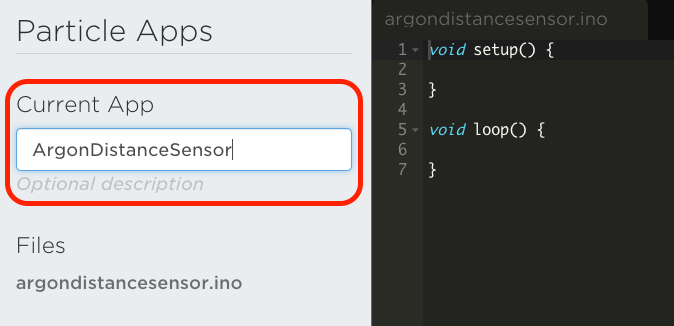 - To program our devices, we're going to use the Particle Web IDE, which you can access at build.particle.io. Log-in to your account and create a new app with a name of your choosing.
